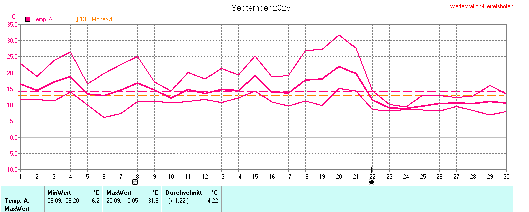 | Wetterkalender Herretshofen Landkreis Unterallgäu - Bayern vom 01. bis 16. 09. 2025 | ||||||||||||||||